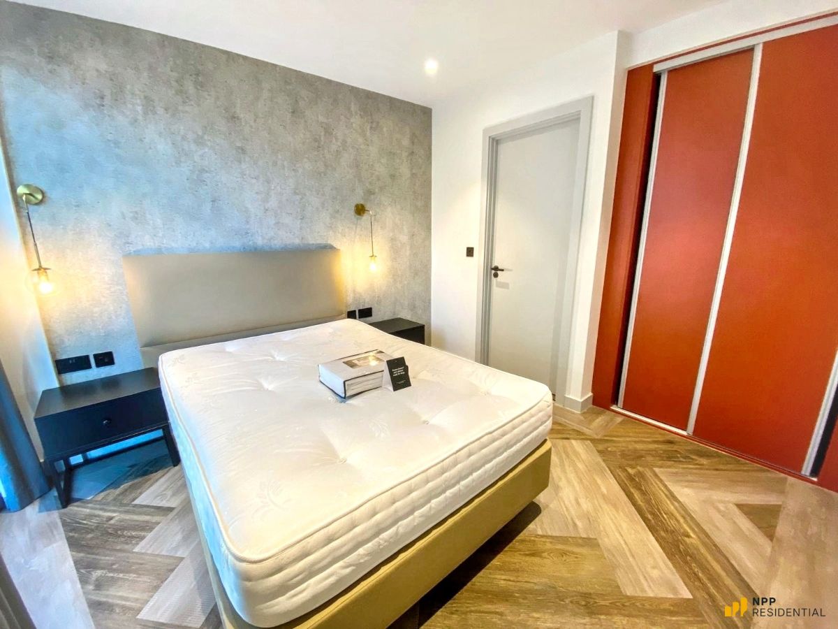 Step inside and you'll immediately notice the attention to detail: underfloor heating, advanced audio intercom, high-spec Bosch appliances, and striking exposed concrete and feature walls that give the home a truly modern, design-led feel. With impressive 2.7m ceilings (far higher than typical city-centre apartments), the space feels open, airy, and exceptionally inviting. Both double bedrooms are generously sized, and the two bathrooms are finished to a premium standard.