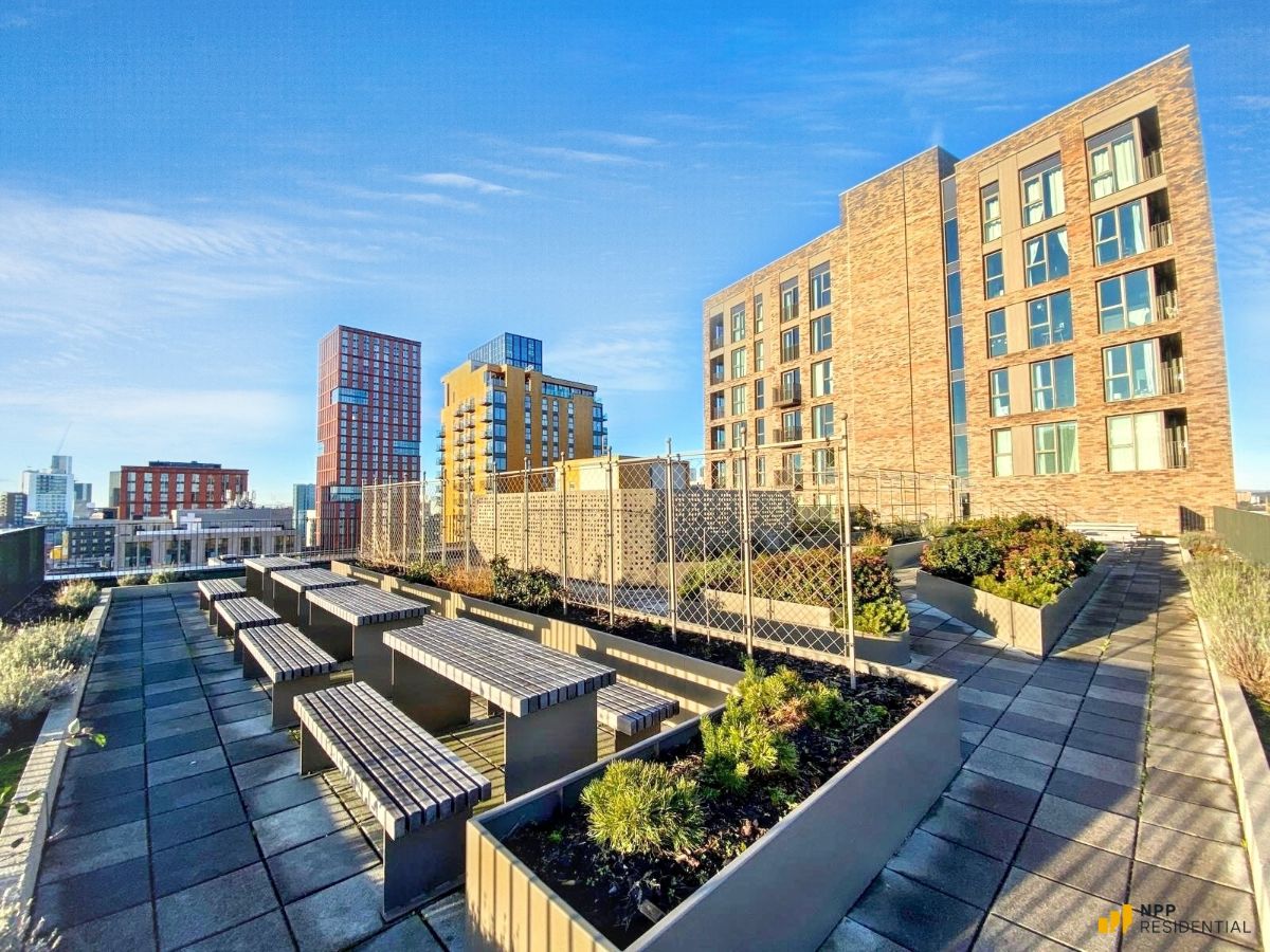 Residents of Ancoats Gardens enjoy outstanding on-site amenities, including a concierge service, beautiful co-working space, fully equipped gym, and a breath-taking rooftop terrace with panoramic views. The development also boasts an exclusive double-storey gymnasium, private gardens, a coffee roastery, and shared social spaces, creating a vibrant and community-focused environment.