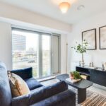 Upon entry, you are welcomed into a spacious open-plan living and dining area, featuring floor-to-ceiling windows that flood the space with natural light. The apartment also includes a modern, fully fitted kitchen, a generous double bedroom, and a contemporary three-piece bathroom suite. The property is fully furnished and finished to a high standard throughout.