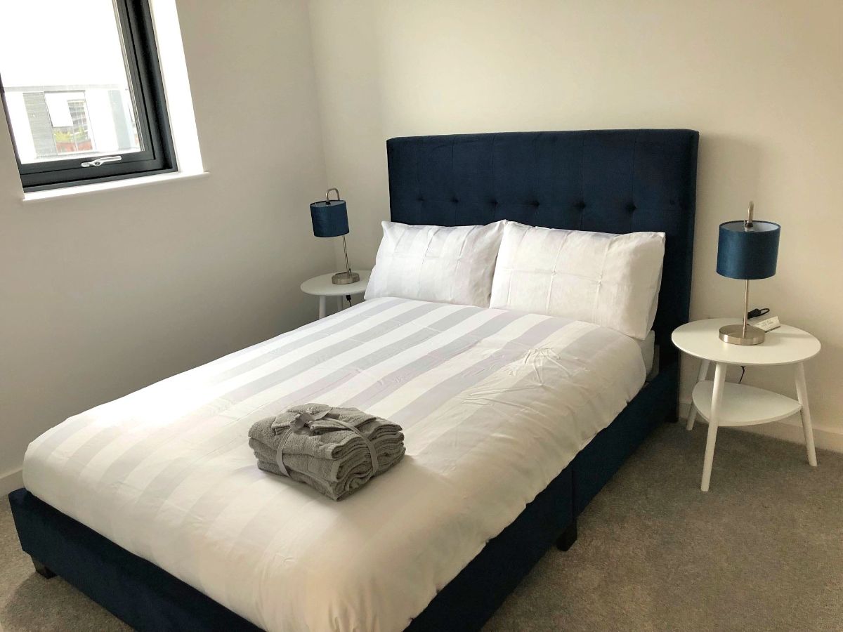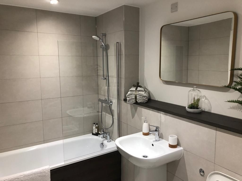 On entry you are greeted with a spacious open plan kitchen and living area. The modern kitchen is finished to a high spec including appliances such as a toaster, kettle, microwave, dishwasher and a large family size fridge and freezer. The stylish lounge is tastefully furnished and consists of a two seater dining table and chairs, two seater fabric sofa, rug and tv stand. The double bedroom is a good size and benefits from a 'jack and jill' three piece bathroom suite.