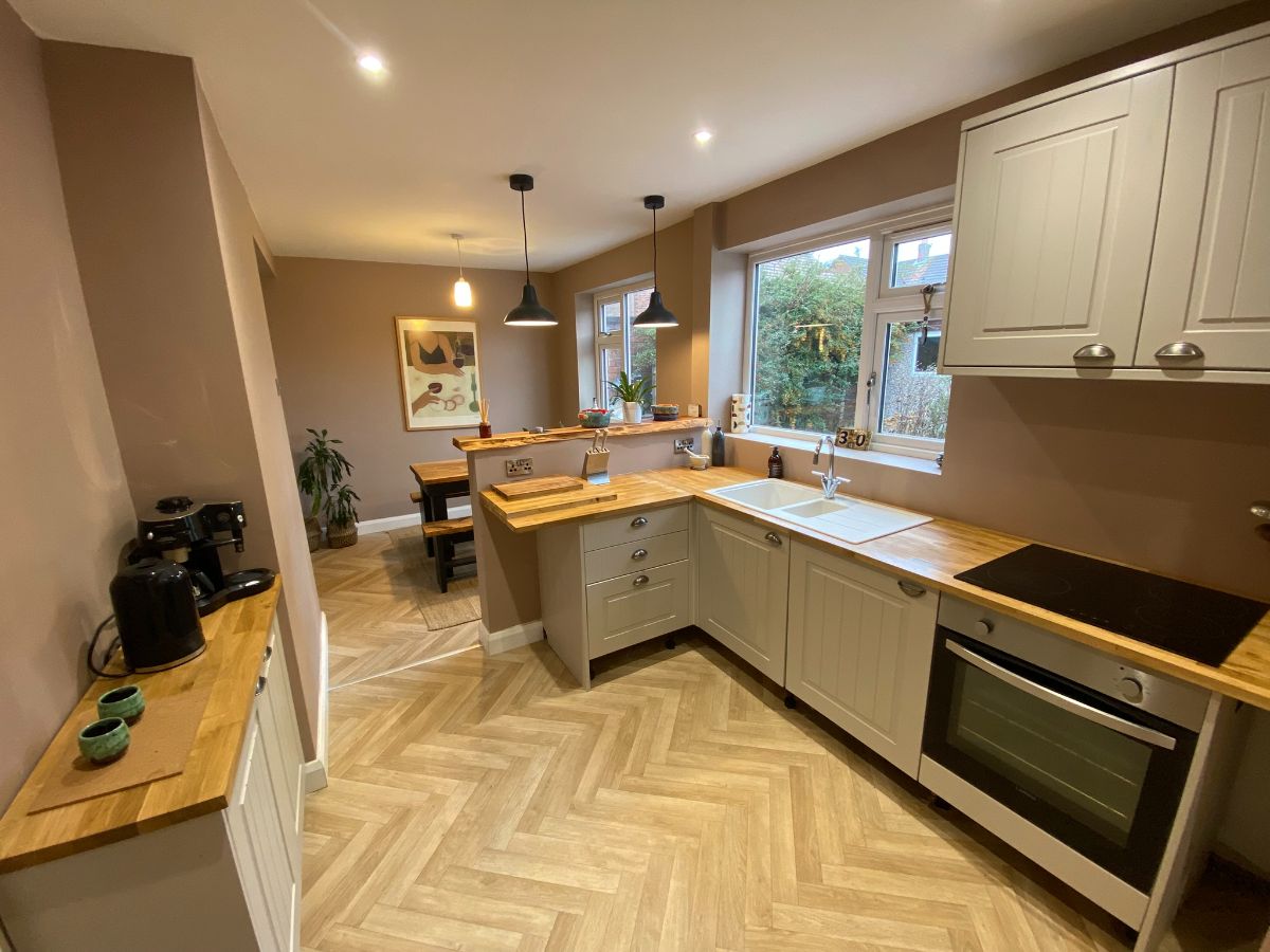 Inside, the ground floor features herringbone flooring throughout, a bright lounge, separate dining room, and a modern Howden kitchen with plenty of storage, plus a practical utility room. Upstairs, there are two generous double bedrooms, with the main bedroom benefiting from double fitted wardrobes, plus a versatile third room currently used as a home office - perfect for a study, nursery, or guest room. The bathroom is beautifully fitted and includes a separate bath and a large shower with a rainfall shower head.