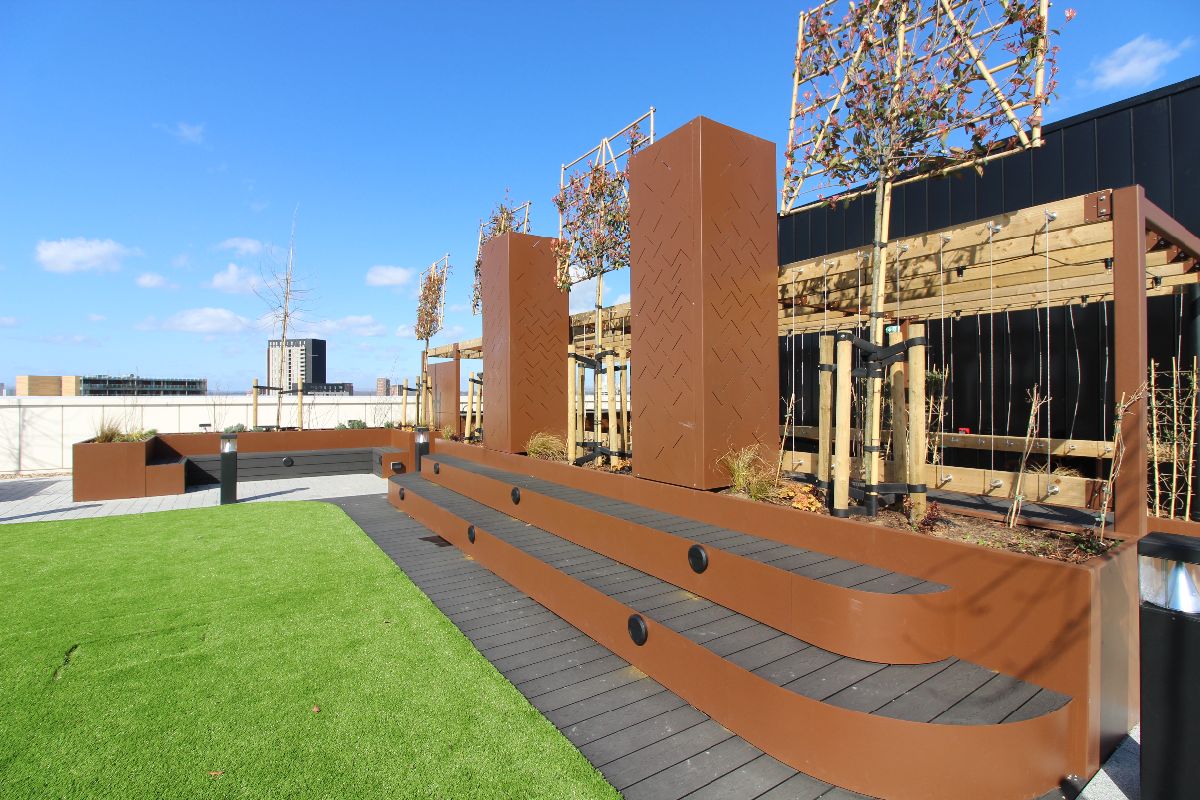 If you would rather stay home and unwind you can head up to the 11th floor rooftop garden which features a private residents bar, yoga space and social breakout areas with magnificent views of Manchester's ever expanding city centre skyline.