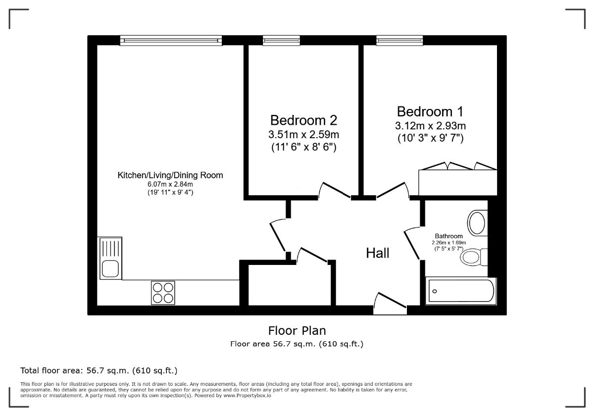 Inside, you'll find a spacious open-plan living and dining area with impressive floor-to-ceiling windows, filling the space with natural light. The sleek, integrated kitchen is ideal for cooking and entertaining, while both double bedrooms are well-sized and bright - the main featuring built-in wardrobes. The bathroom showcases a modern design with a practical layout.